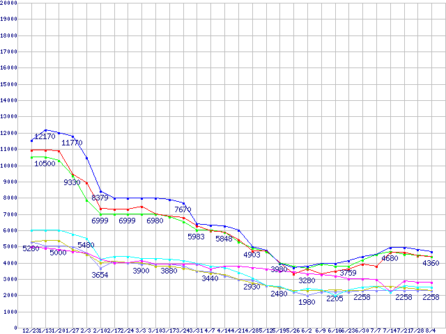 メモリ主要製品(最安値5千円~1万円未満)の最安値推移