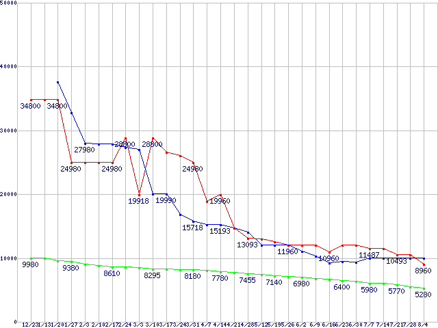 メモリ主要製品(最安値5千円未満)の最安値推移