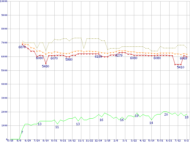 | HDS721616PLAT80 (160GB)の価格推移 | | | (2006年5月18日~2007年8月2日) |