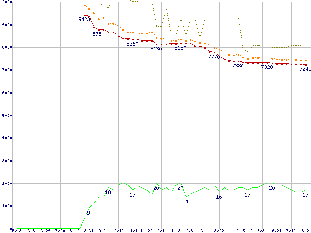 | HDT725025VLA380 (250GB,8MB)の価格推移 | | | (2006年5月18日~2007年8月2日) |