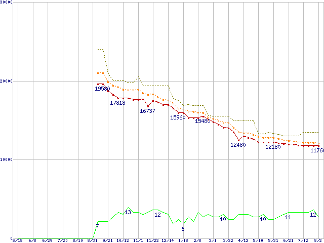 | ST3400620AS (400GB,16MB)の価格推移 | | | (2006年5月18日~2007年8月2日) |