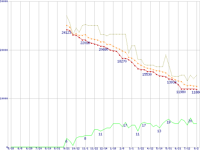 | HDT725050VLAT80 (500GB,8MB)の価格推移 | | | (2006年5月18日~2007年8月2日) |