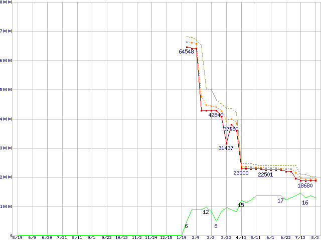 | Athlon 64 X2 5600+ (2.8GHz,L2 1MB×2)の価格推移 | | | (2006年5月19日~2007年8月3日) |