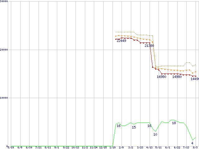 | Core 2 Duo E4300 (1.80GHz,L2 2MB)の価格推移 | | | (2006年5月19日~2007年8月3日) |