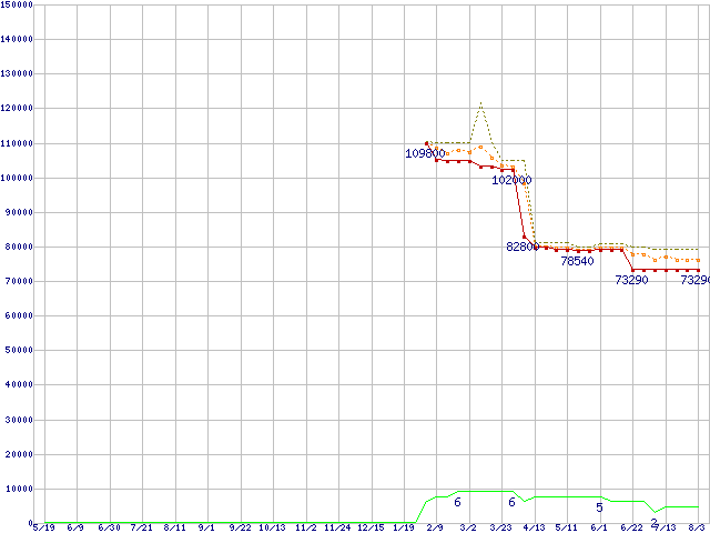| Athlon 64 FX-72 (2.8GHz) ※2個セットの価格の価格推移 | | | (2006年5月19日~2007年8月3日) |