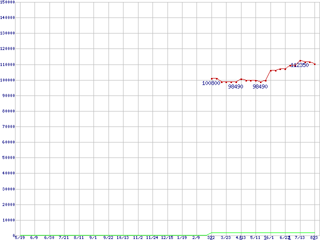 | Opteron 2220 (2.8GHz)の価格推移 | | | (2006年5月19日~2007年8月3日) |