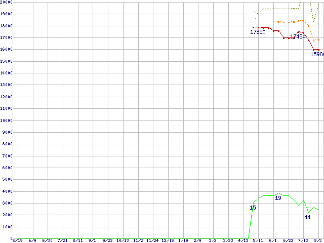 | Core 2 Duo E4400 (2GHz,L2 2MB)の価格推移 | | | (2006年5月19日~2007年8月3日) |