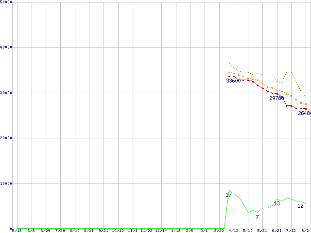 | HDS721075KLA330 (750GB,32MB)の価格推移 | | | (2006年5月18日~2007年8月2日) |