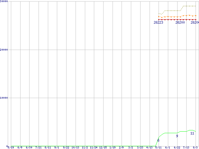 | Core 2 Duo T7100 (1.8GHz,L2 2MB)の価格推移 | | | (2006年5月19日~2007年8月3日) |