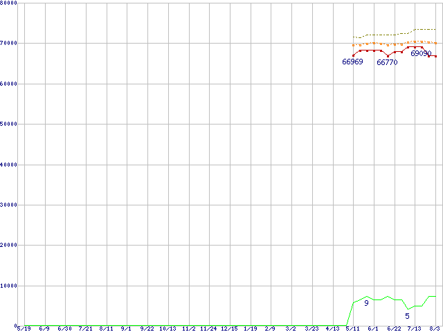| Core 2 Duo T7700 (2.4GHz,L2 4MB)の価格推移 | | | (2006年5月19日~2007年8月3日) |