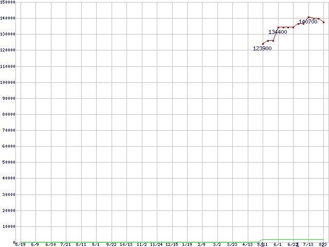 | Opteron 2222SE (3.0GHz) バルクの価格推移 | | | (2006年5月19日~2007年8月3日) |