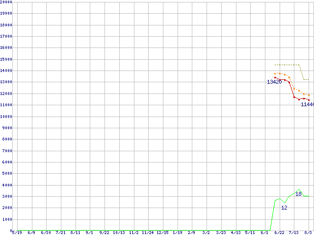 | Athlon X2 BE-2350 (2.1GHz,L2 512KB×2,TDP 45W)の価格推移 | | | (2006年5月19日~2007年8月3日) |