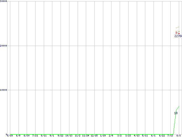 | Core 2 Duo E6550 (2.33GHz,L2 4MB)の価格推移 | | | (2006年5月19日~2007年8月3日) |