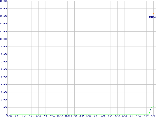 | Core 2 Extreme QX6800 (2.93GHz)の価格推移 | | | (2006年5月19日~2007年8月3日) |