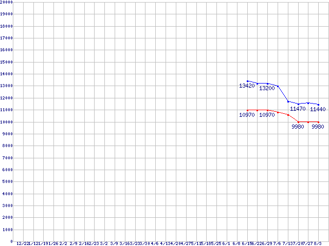 Socket AM2 (FSB 1000MHz,Dual Core)の最安値推移