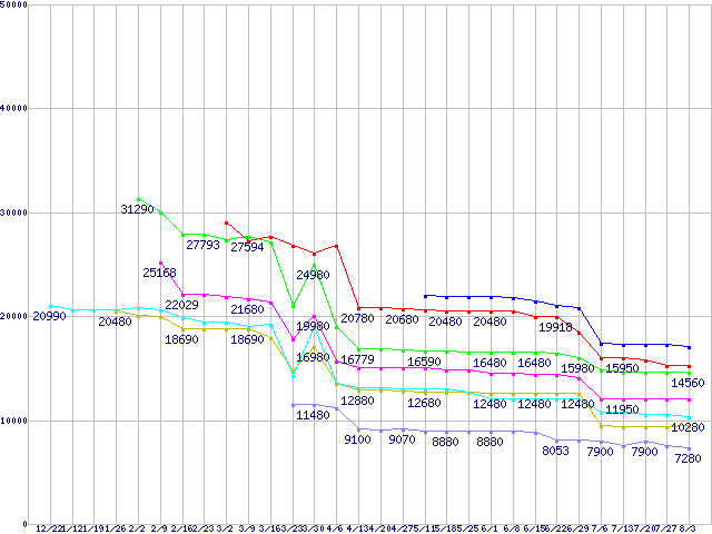 | Socket AM2 (FSB 1000MHz,Dual Core,TDP65W)の最安値推移 | | | (2006年12月22日~2007年8月3日) |