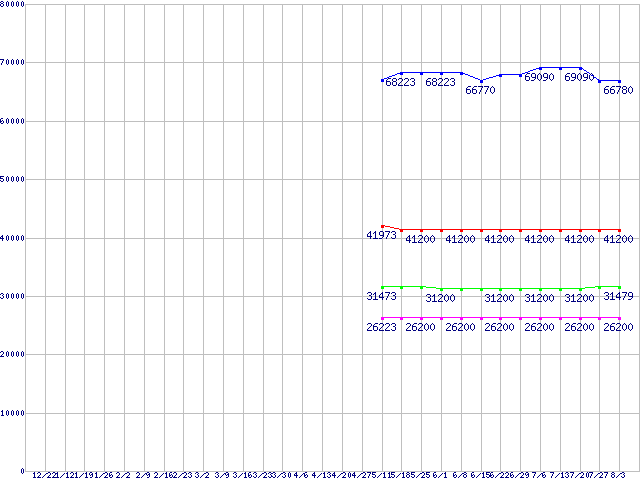 | FSB 800MHz対応Core 2 Duo向けSocket (FSB 800MHz,Dual Core,EM64T対応)の最安値推移 | | | (2006年12月22日~2007年8月3日) |