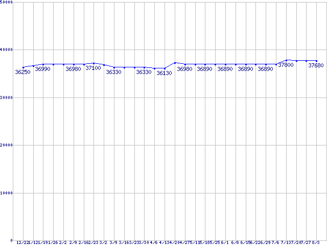 | Core Duo向けSocket 478 (FSB 667MHz,Dual Core,EM64T対応)の最安値推移 | | | (2006年12月22日~2007年8月3日) |