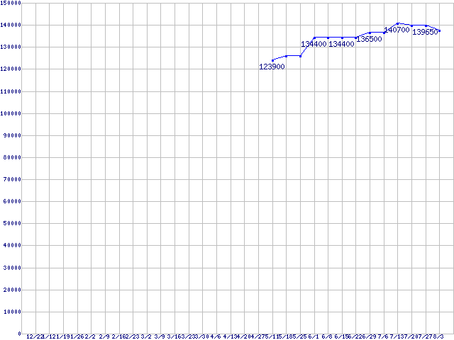 | Socket F (FSB 1000MHz,L2 1MBx2,Dual Core,TDP 120W)の最安値推移 | | | (2006年12月22日~2007年8月3日) |