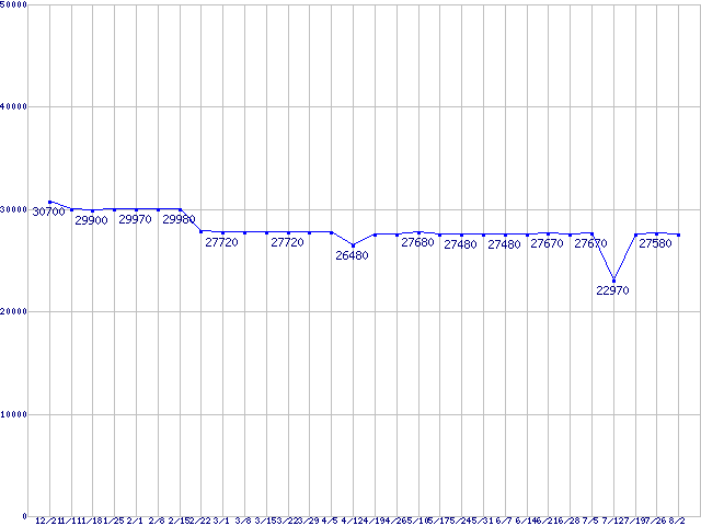 WD Raptor (10000rpm,SATA 1.5Gb/s,16MB,TLER)の最安値推移