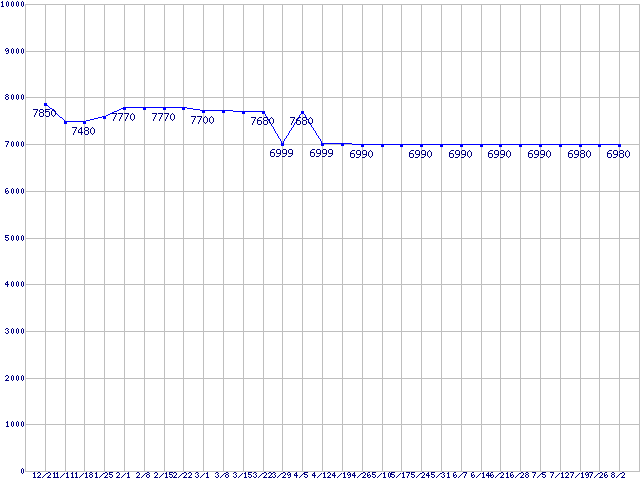 | WD Caviar[Special Edition] (7200rpm,Ultra ATA/100,8MB)の最安値推移 | | | (2006年12月21日~2007年8月2日) |