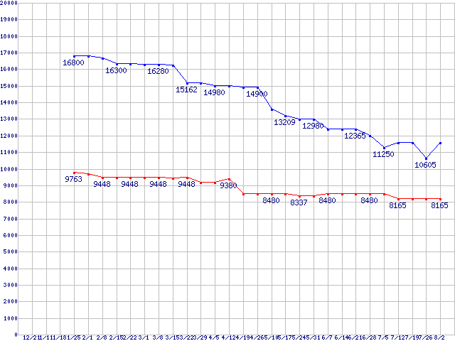 WD Caviar[Special Edition] (7200rpm,Ultra ATA/100,8MB)の最安値推移