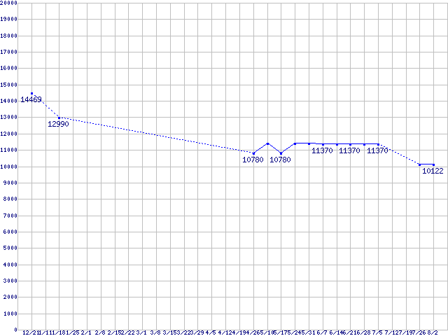Ultrastar A7K1000 (7200rpm,SATA 3Gb/s)の最安値推移