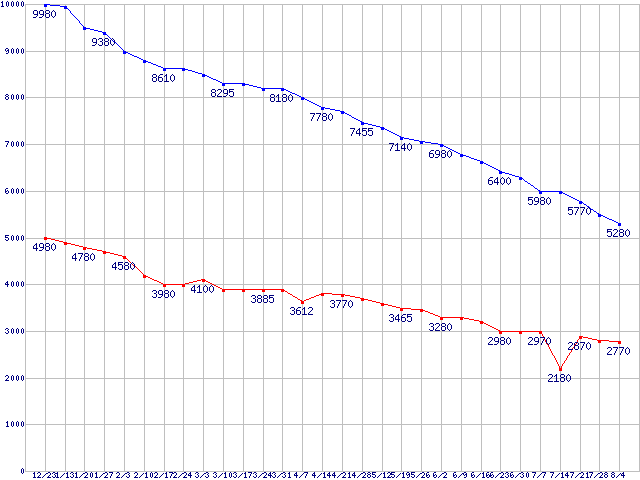 PC2-4200*(DDR2-533) DDR2 SDRAM DIMMの最安値推移