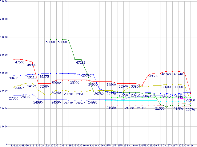 CPU主要製品(最安値3万円~6万円未満)の最安値推移