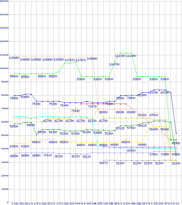 CPU主要製品(最安値6万円以上)の最安値推移