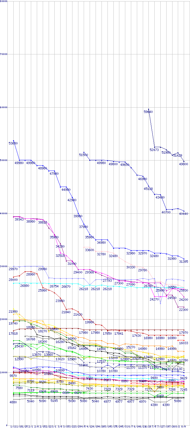 ※製品名をクリックすると個別のグラフを表示します ※点線部は販売店が確認できなかった、または調査データがないことを示します |