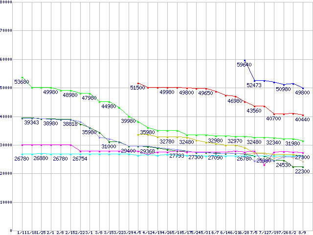 HDD主要製品(最安値2万円以上)の最安値推移