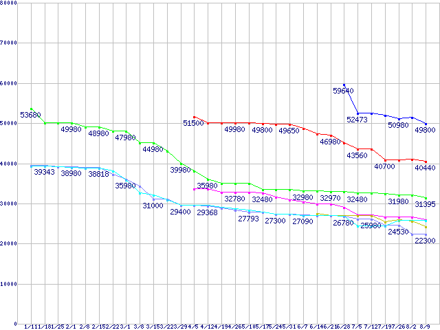 HDD主要製品(最安値1万円未満)の最安値推移