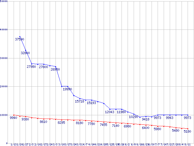 メモリ主要製品(最安値5千円~1万円未満)の最安値推移