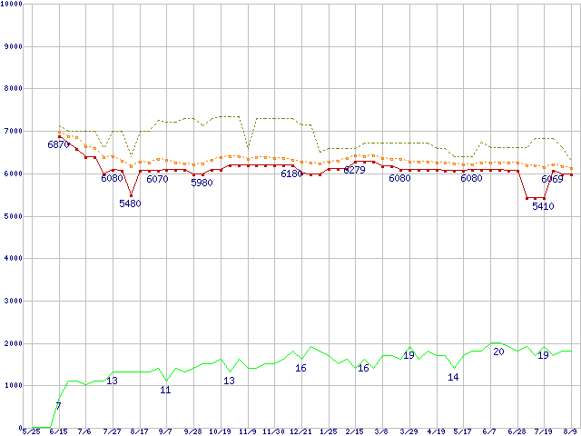 | HDS721616PLAT80 (160GB)の価格推移 | | | (2006年5月25日~2007年8月9日) |
