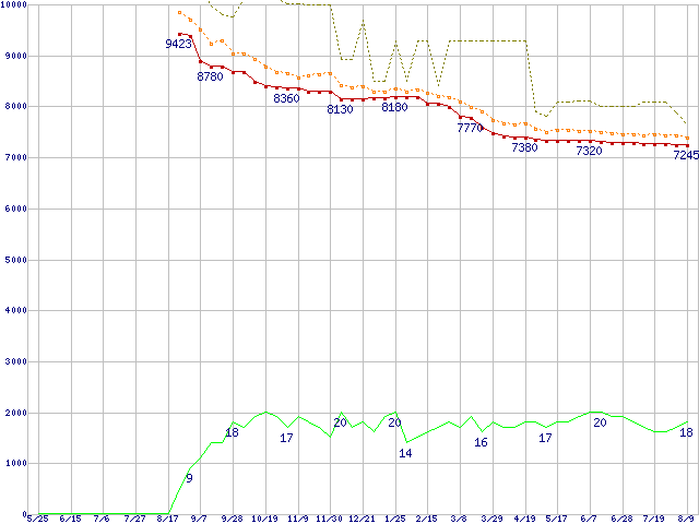 | HDT725025VLA380 (250GB,8MB)の価格推移 | | | (2006年5月25日~2007年8月9日) |