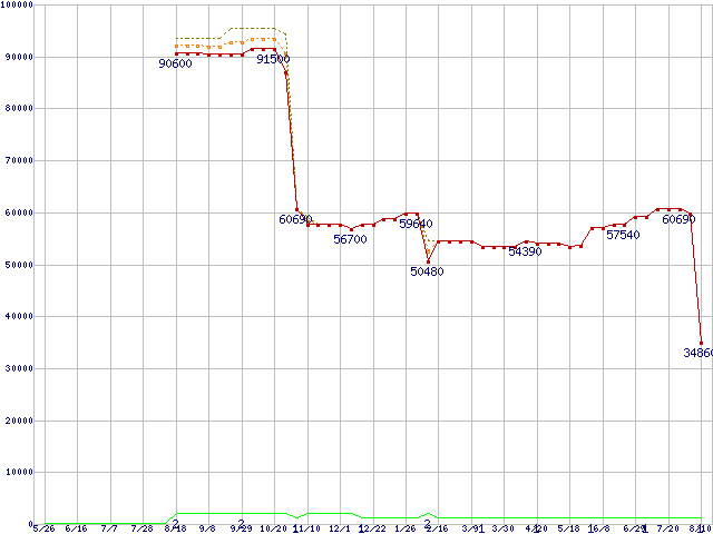 | Opteron 2216 (2.4GHz)の価格推移 | | | (2006年5月26日~2007年8月10日) |