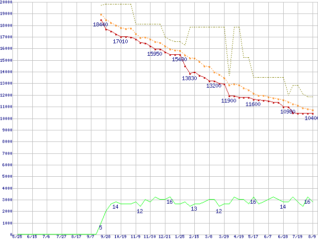 | HDT725040VLA360 (400GB,16MB)の価格推移 | | | (2006年5月25日~2007年8月9日) |
