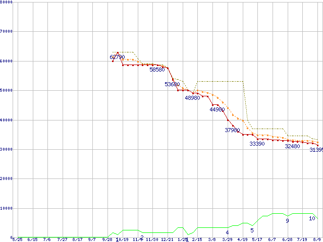 | ST3750640NS (750GB,16MB)の価格推移 | | | (2006年5月25日~2007年8月9日) |