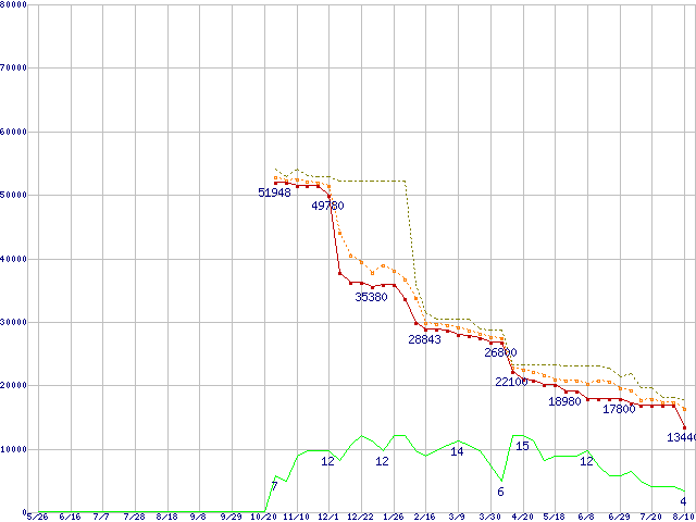 | Athlon 64 X2 5200+ (2.6GHz,L2 1MB×2)の価格推移 | | | (2006年5月26日~2007年8月10日) |