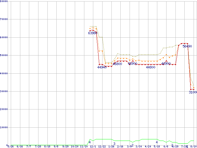 | Xeon E5310(1.60GHz)の価格推移 | | | (2006年5月26日~2007年8月10日) |