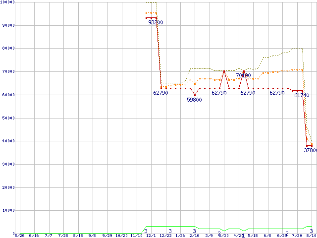 | Xeon E5320(1.86GHz)の価格推移 | | | (2006年5月26日~2007年8月10日) |