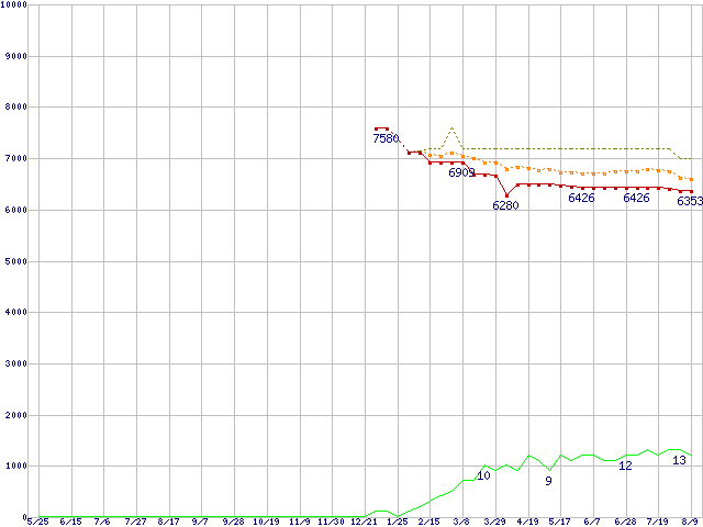 | ST3160815AS (160GB,8MB)の価格推移 | | | (2006年5月25日~2007年8月9日) |