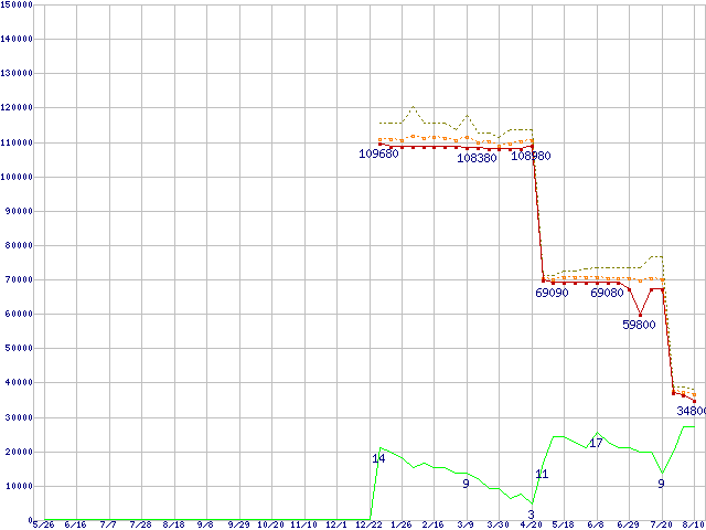 | Core 2 Quad Q6600 (2.40GHz,L2 4MB×2)の価格推移 | | | (2006年5月26日~2007年8月10日) |
