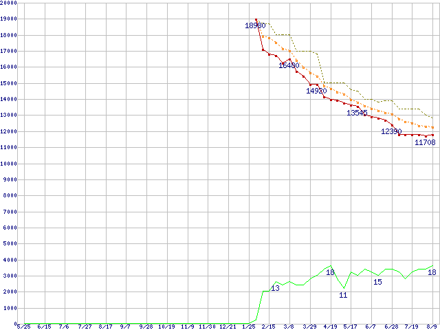 | WD5000AAKS (500GB)の価格推移 | | | (2006年5月25日~2007年8月9日) |