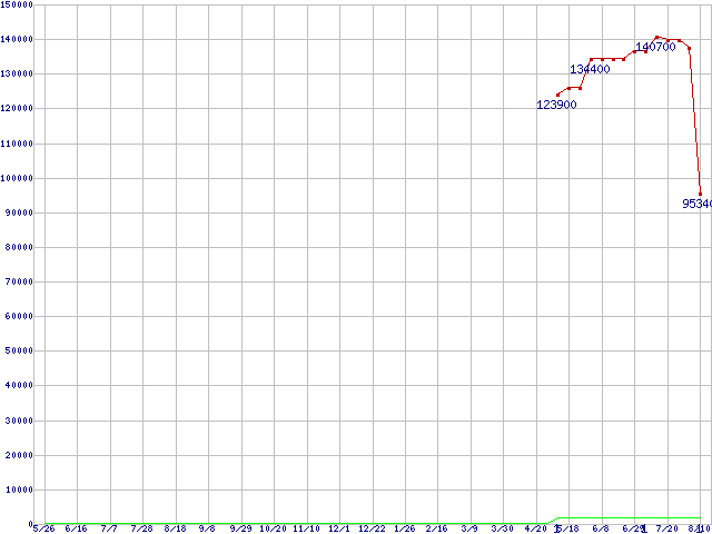 | Opteron 2222SE (3.0GHz) バルクの価格推移 | | | (2006年5月26日~2007年8月10日) |
