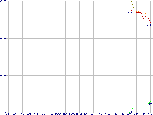 | WD7500AAKS (750GB)の価格推移 | | | (2006年5月25日~2007年8月9日) |