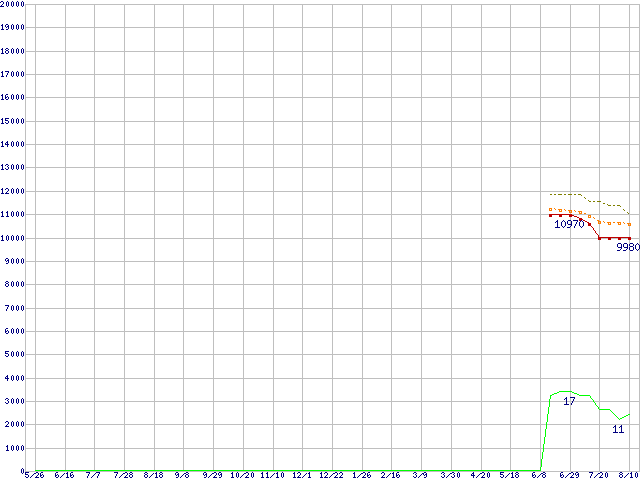 | Athlon X2 BE-2300 (1.9GHz,L2 512KB×2,TDP 45W)の価格推移 | | | (2006年5月26日~2007年8月10日) |
