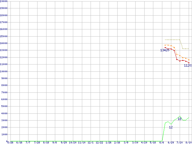 | Athlon X2 BE-2350 (2.1GHz,L2 512KB×2,TDP 45W)の価格推移 | | | (2006年5月26日~2007年8月10日) |