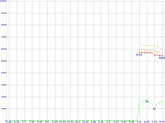 | Celeron 420 (1.6GHz)の価格推移 | | | (2006年5月26日~2007年8月10日) |